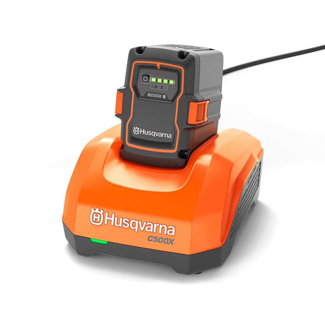 Ο φορτιστής Husqvarna 40-C500X είναι ένας αποδοτικός φορτιστής γρήγορης φόρτισης, βελτιστοποιημένος για την ταχεία φόρτιση μπαταριών στο ευέλικτο σύστημα μπαταριών Husqvarna BLi-X 36V. Με ισχύ φόρτισης 500 W και το ActiveCool, ένα ενεργό σύστημα ψύξης αέρα με ενσωματωμένους ανεμιστήρες, ο 40-C500X επιτρέπει τη γρήγορη φόρτιση χωρίς την ανάγκη για χρονοβόρες περιόδους ψύξης. Ο φορτιστής μπορεί είτε να τοποθετηθεί σε γραφείο ή ράφι είτε να στερεωθεί εύκολα στον τοίχο, χρησιμοποιώντας ένα βραχίονα στήριξης που διατίθεται ως αξεσουάρ.